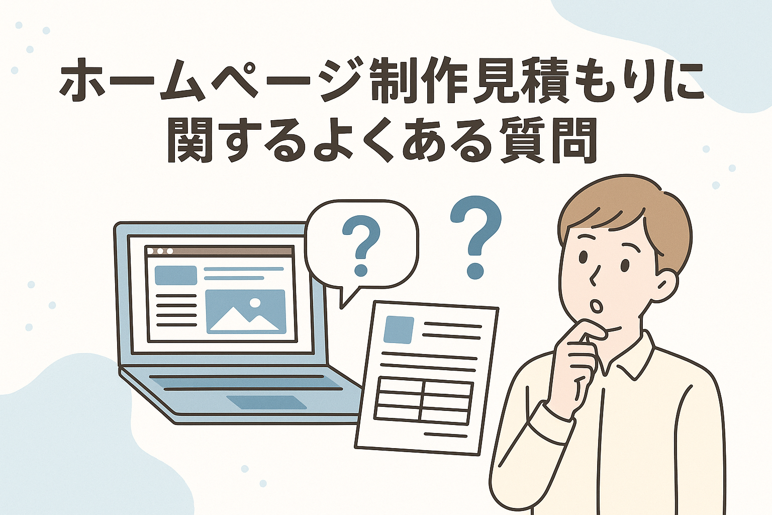 ホームページ制作の見積もりについて、よくある質問とその回答をまとめました。初めて制作を依頼する方の参考になれば幸いです。