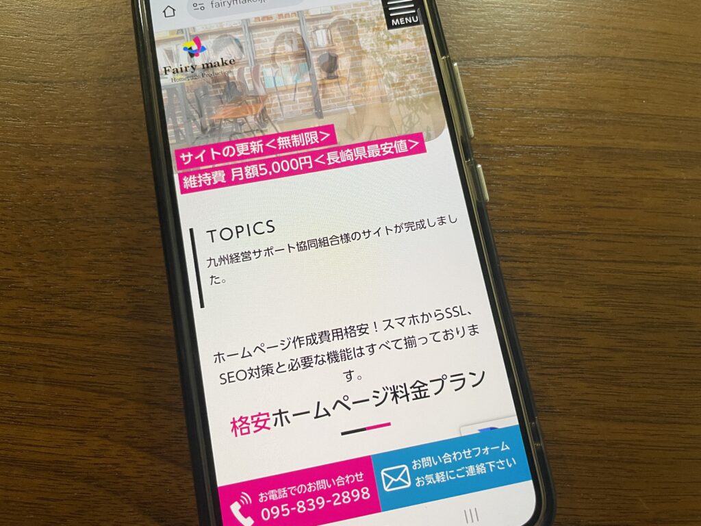 - 長崎県内最安水準の月額5,000円で、更新無制限・スマホ対応・SSL標準装備の高機能ホームページを提供