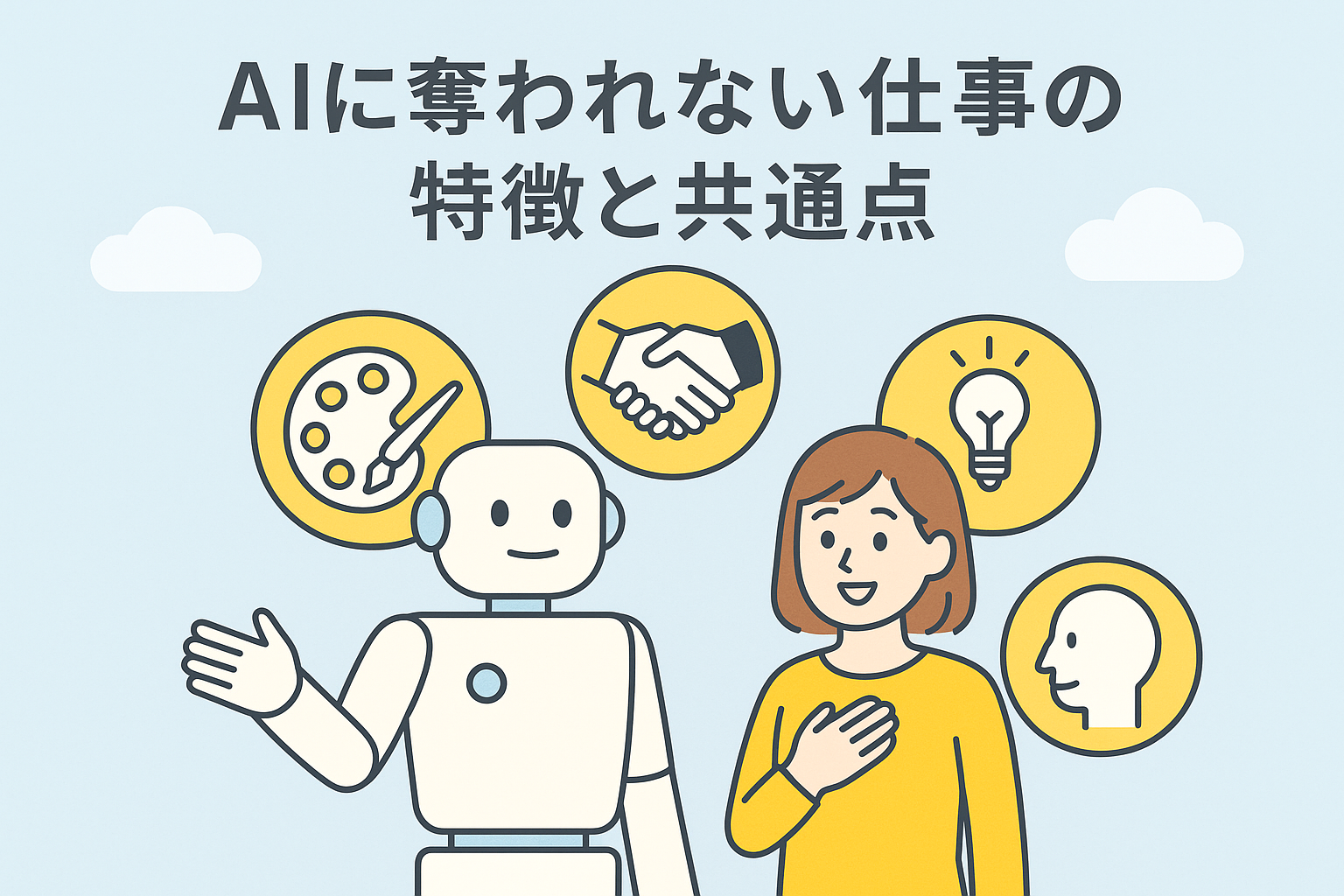 AI時代においても人間に求められ続ける仕事には、いくつかの明確な共通点があります。それは、AIが苦手とする「人間ならでは」の能力を必要とする業務です。ここでは、そうした仕事に共通する6つの特徴を解説します。