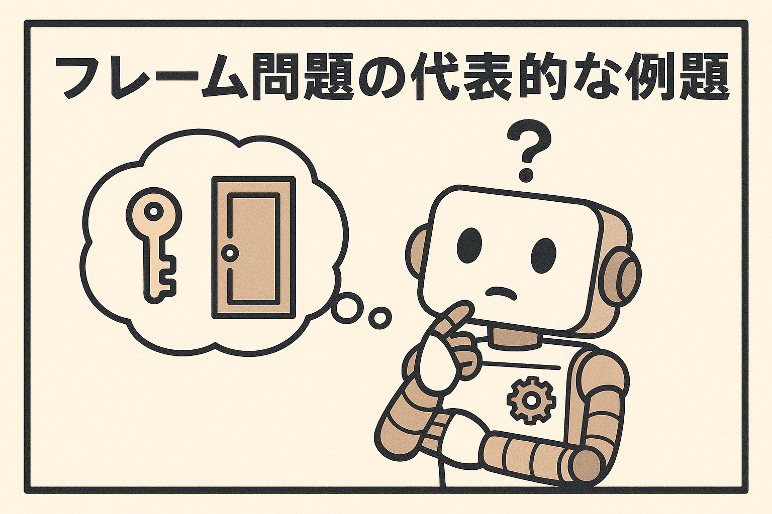 ここでいう「フレーム」とは、特定の状況や問題を考える上での「思考の枠組み」や「考慮すべき範囲」のことです。 例えば、あなたが部屋を出て行くとき、「ドアノブを回せばドアが開く」ことには注意を払いますが、「壁紙の色は変わらない」「天井は落ちてこない」「地球の自転は止まらない」といった、無数の「変化しない事実」についていちいち考えたりはしません。